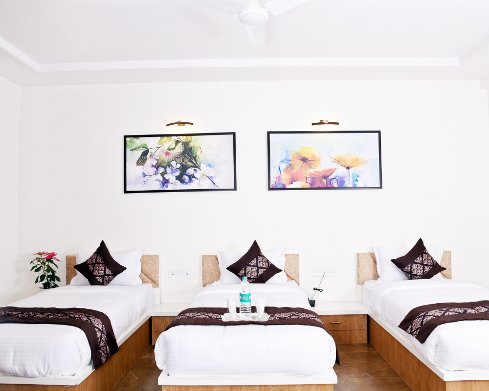 Executive AC rooms can comfortably accommodate our guests with modern amenities, each of these rooms features a king-size bed, twin bed, triple bed, Fan, Television, Dressing Mirror, WiFi Internet Connectivity, Study Chair, Extra Toiletries, Sufficient Light, Mineral water, Dental Kit (on request), Hot and Cold Water and Study table. To ensure that guests have a good night’s sleep, rooms come with cozy mattresses and the finest quality pillows. The wall of the room is done with light shades which make the rooms more appealing.
